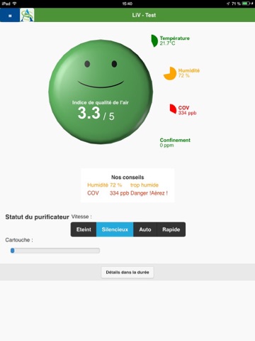 This application helps you: it helps you to control the Air Serenity equipment, and gives you advice to keep air clean around you.