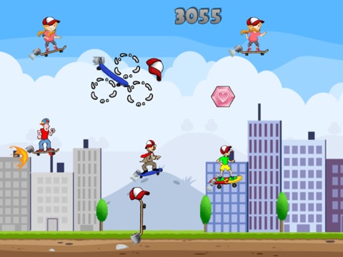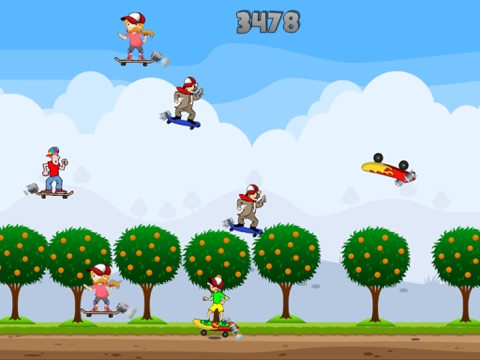 A skateboard fitted with a modern airjet engine takes to the skies. Compete against other air skaters in this exhilarating arcade game. Avoid colliding into obstacles, eg, crazy skateboarding zombies. Fly as far as you can to get high score.