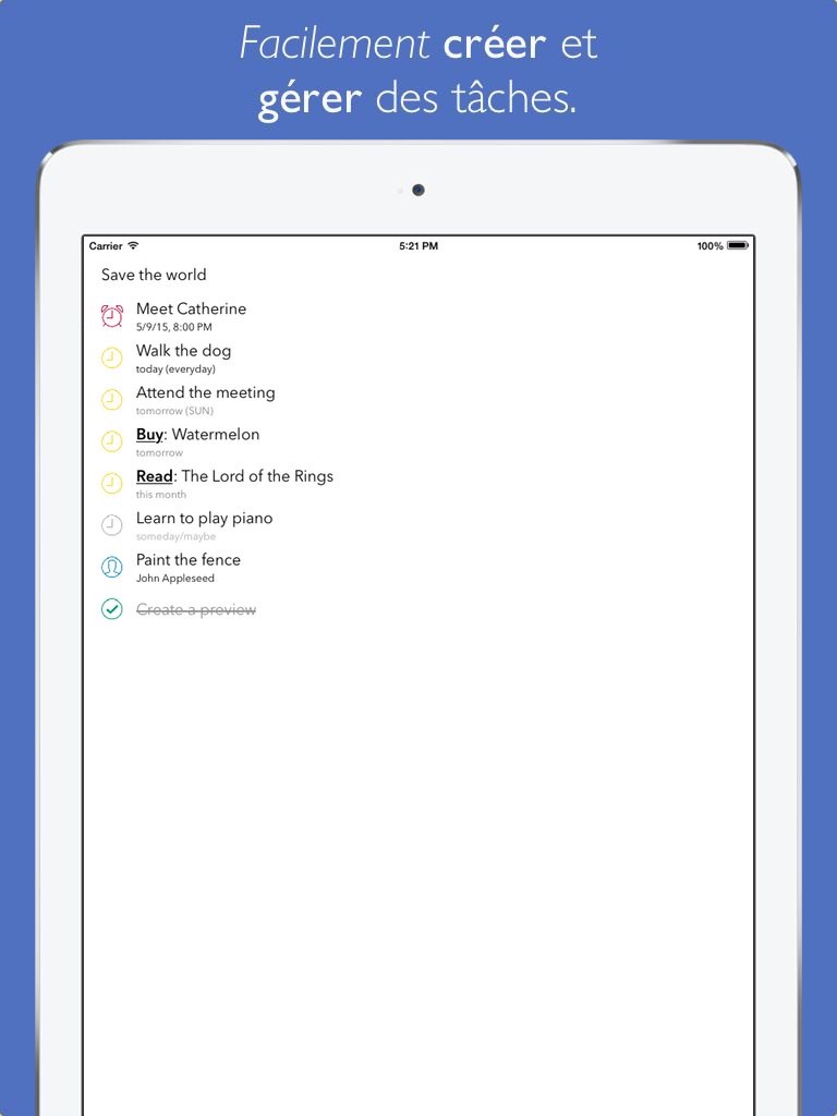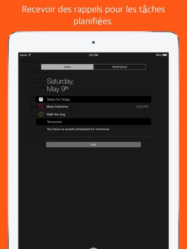 Periodically revise your schedule, Air Tasks already organized it for you in a convenient way.