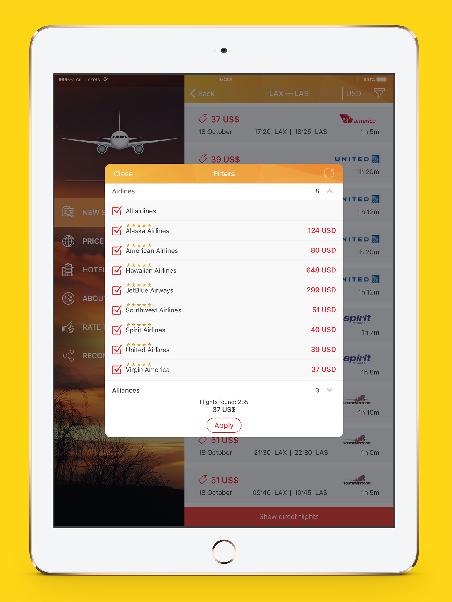 Air Tickets is a free app for finding cheap flights from 1067 airlines from all over the world. Save on tickets and not on your vacation. No extra charge, your payment is 100% secured, low prices are guaranteed – these are some of our competitive advantages!