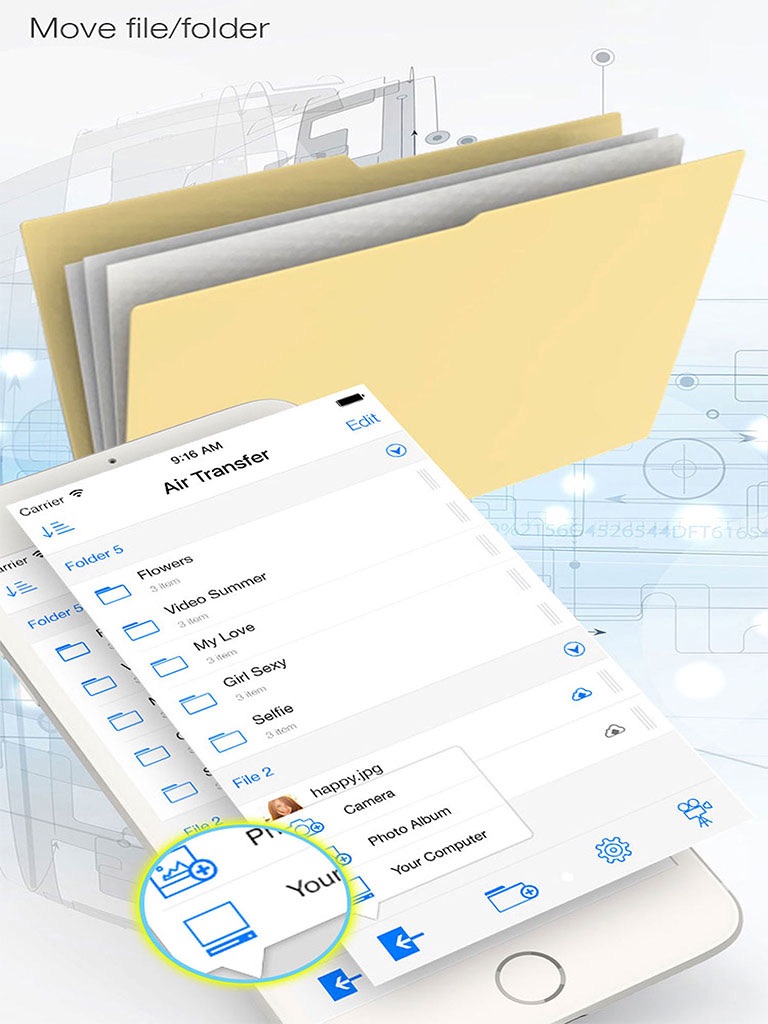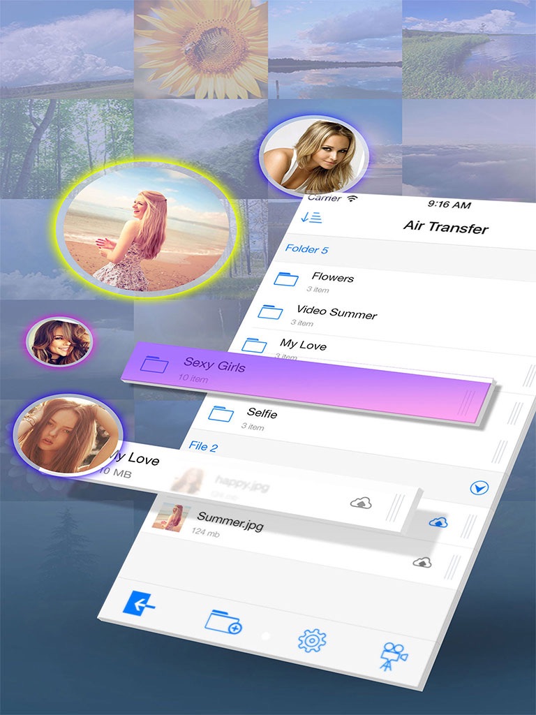 Air Transfer is a photo/movie safe that keeps all of your private pictures and videos hidden behind a password.
