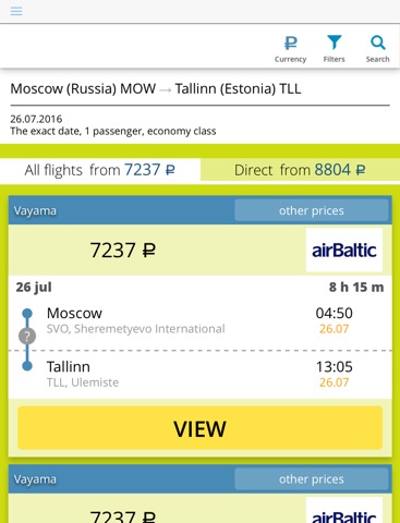 App for finding cheap air tickets for the Baltic region