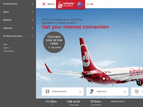 The airberlin connect app can be used for connecting to Wi-Fi and watching onboard program for selected airberlin flights.