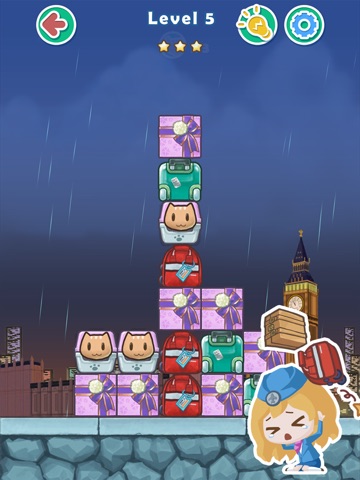 You can move, drop and swap the bags. Three or more bags of the same kind in a line is clear.