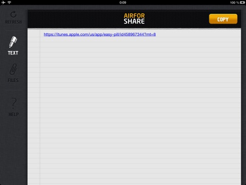 AirForShare helps you to share text, links and files between devices/computers instantly. Once uploaded your text or file will be available for 30 minutes on any other device you use in your Wi-Fi network *