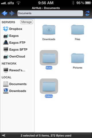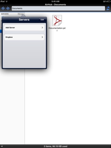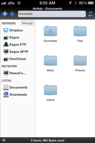 File Manager experience is now available for iOS devices. AirHub allows you to manage your files whether its locally on the device or on a remote server. Now you can play movies, videos and music without requiring them to be stored locally.