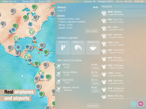 - Buy and sell real planes and airports