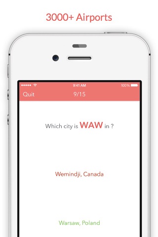 No matter if you are a globetrotter or just curious. With AirportQuiz you can easily improve your knowledge of the worlds Airports. More than 3000 Aiport Codes from all over the world await you.