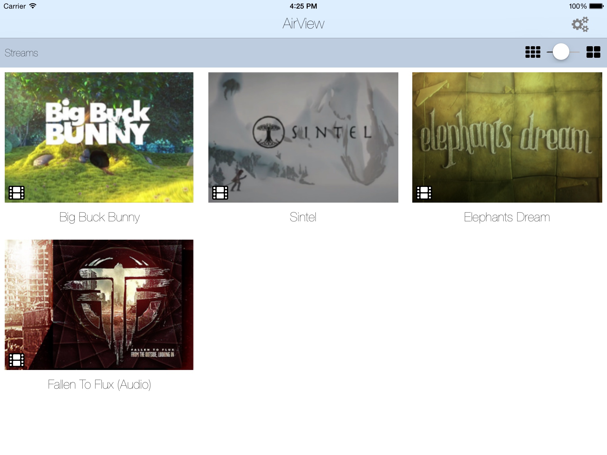 But you can use AirView also for streaming video from several other sources to your iPhone. Free sample video feeds are shipped with your app. There are several configuration options to fit your needs. As AirView! is based on FFmpeg it supports video over various transport ways such as: http, https, mms, mmsh, rtmp, rtsp and much more.