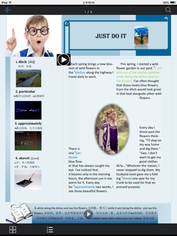 集文字、图片、音频和视频为一体的多媒体电子书;内容丰富,课程由易到难;为方便学习,每课均配有习题;段落朗读,段落详解功能。