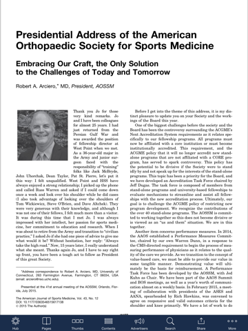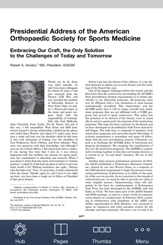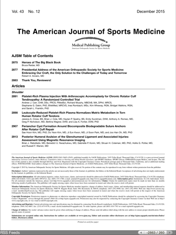 The official publication of the American Orthopaedic Society for Sports Medicine (AOSSM), the journal acts as an important forum for independent orthopaedic sports medicine research and education, allowing clinical practitioners the ability to make decisions based on sound scientific information.