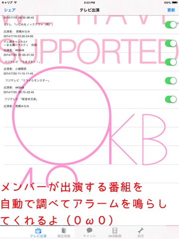 AKB48のメンバーが出演する番組を見逃さないようにアラームで知らせてくれる非公式アプリです!