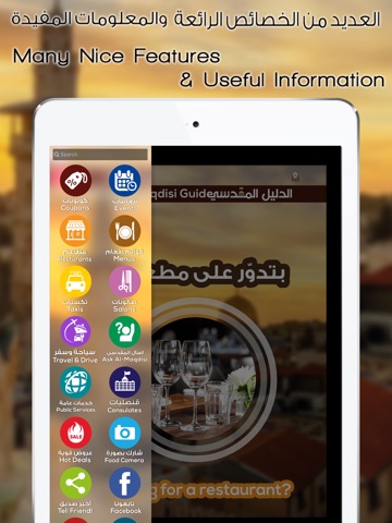 - Al-Maqdisi Guide is the first guide for Jerusalem city and its surroundings which allow users to get connected with most of the various commercial and institutional businesses in Jerusalem and to reach and communicate with them easily, such as restaurants, cafes, pastry shops, salons, beauty centers, cladding, taxis, craftsmen, tourism and travel agencies, car rental, clinics, medical centers, consulates and much more points of interest.
