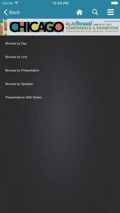 The ALA Mobile Conference mobile application allows you to access the American Library Associations various annual conferences. Within the underlying event apps, users can access presentations, exhibitors, posters, and connect with other attendees. Users can also take notes adjacent available presentation slides and draw directly on slides inside the event apps.
