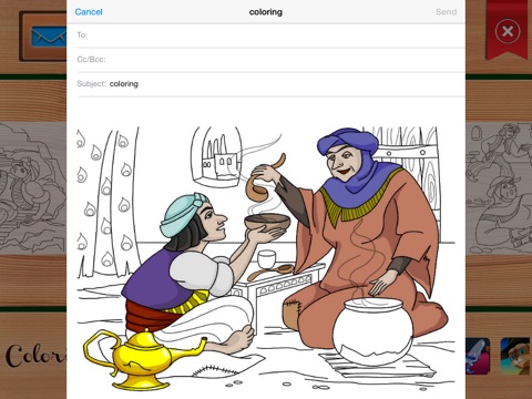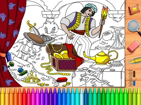 Lets your children dive into fascinating world of fairy tale "Aladdin and His Wonderful Lamp"! They can try role of author and color personages on their own. There are 25 pictures which can be colored, sent by email, printed, saved to album or uploaded to Facebook what gives children almost unlimited opportunities.