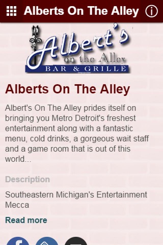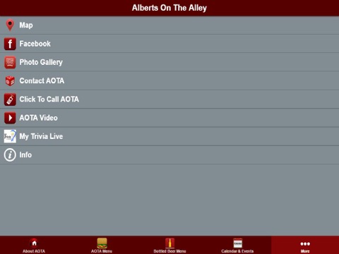 With features like Click To Call, an Interactive Map and a Whiteboard Commercial that outlines our overall service we provide to our customers, this App is a must have for all of our customers who enjoy the atmosphere Alberts On The Alley Provides.
