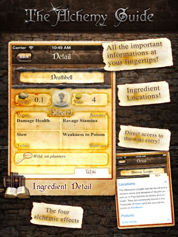 Cette app est utile à plus dun titre. Elle vous aidera grandement à faire des potions, à mieux comprendre le fonctionnement de lalchimie et à ne pas gâcher des ingrédients parfois précieux. Et surtout, son design est à la hauteur du jeu, contrairement à dautres où le graphisme est absent.