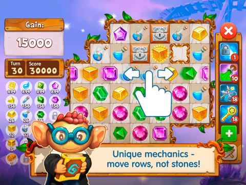 - All-time match-3 gameplay hit, but with new edition: move a row to combine elements. Be smart to show impressive combinations and unbelievable moves!