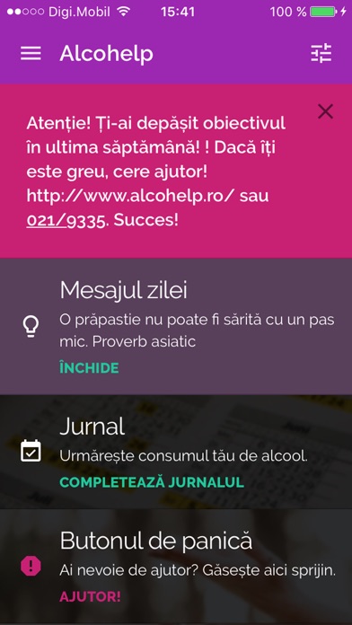 ALCOHELP este o aplicație personalizabilă, în care utilizatorii au posibilitatea de a include informații relevante pentru ei. Toate informațiile introduse sunt anonime și confidențiale.