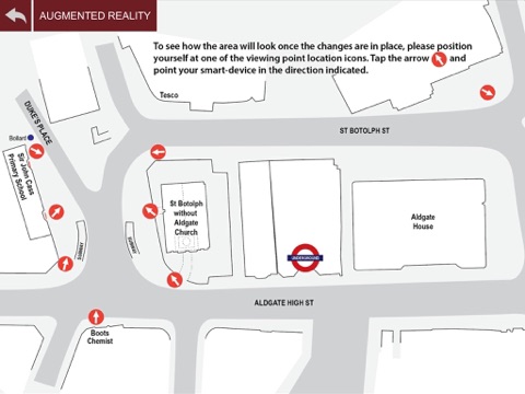 The Aldgate project allows users to see the major uplift to the Aldgate area with Augmented Reality via your device. There is also information about the History of Aldgate and also meet the team behind the Aldgate project.