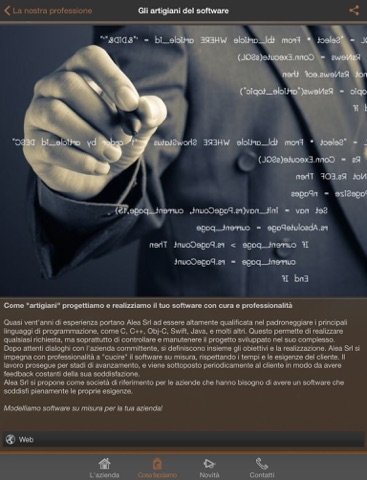 Fondata nel 1996, nasce come software house e lavora con abilità e preparazione nello sviluppo di software per Mac, applicazioni smartphone iOS e portali web di gestione.