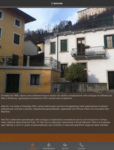 Alea Srl è altamente specializzata nello sviluppo di applicazioni smartphone per la comunicazione in tempo reale. Dispone della divisione Push To Talk che ha realizzato interamente il Social Network Tilimi e la business app Talkway e che è in grado di personalizzare ogni prodotto in base alle specifiche esigenze della clientela.
