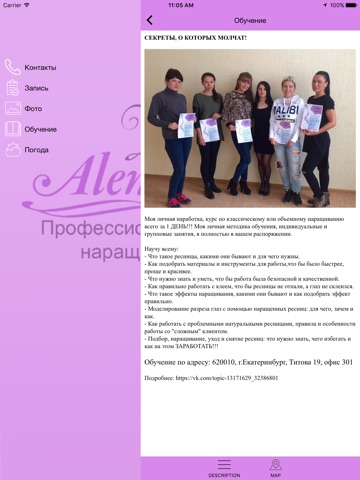 В данном приложении Вы можете прочитать информацию о нас, записаться на услуги нашей академии и даже посмотреть прогноз погоды, чтобы внезапный дождик не испортил шикарного образа.
