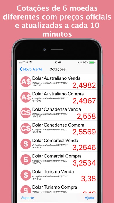 - SEM LIMITE: Configure quantos alertas você quiser para uma mesma moeda ou para várias moedas, tudo ao mesmo tempo.