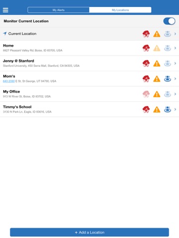 Simply add the locations that matter to you. For example, you could identify your home, your child’s school, where your aging parent resides, the university where your older child attends, and your office. When you travel, you can enable the app to monitor your current location in order to receive any emergency alerts issued for the city or area you are visiting.