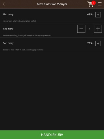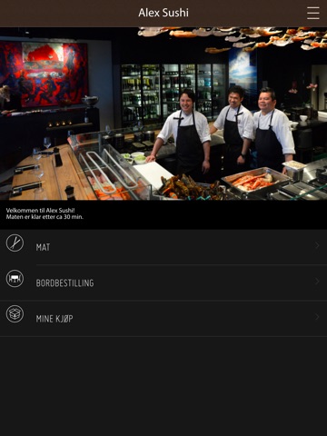 Velkommen til Alex Sushi-appen! Her finner du vår fullstendige sushi-meny i tillegg til nye, spennende retter som kun er tilgjengelig via appen. Du har valget mellom å hente selv eller få maten kjørt rett hjem. Du kan også legge inn din egen faste bestilling, slik at maten alltid bare er et tastetrykk unna. Betal med Vipps eller ved henting. God fornøyelse!