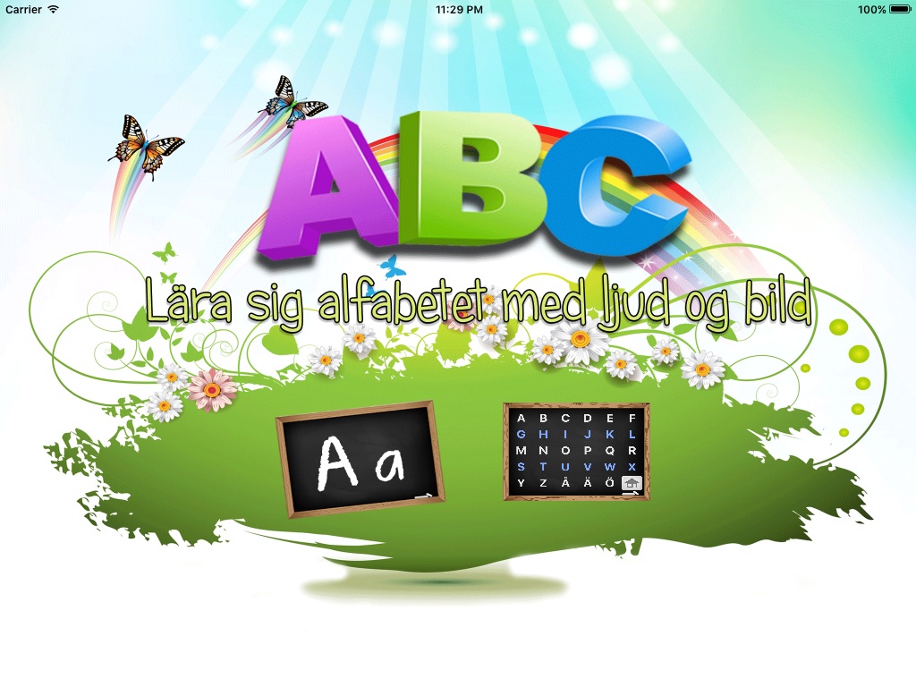 Lär dig svenska alfabetet med ljud och bild. Tryck enstaka bokstäver eller bild som matchar bokstaven. Starka färger och enkel att använda.