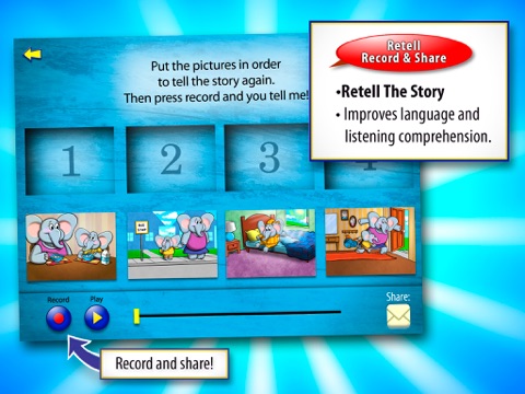 -Help your child record his or her own version of the story and share it with Grandma and other loved ones, teachers and friends…right from the app!