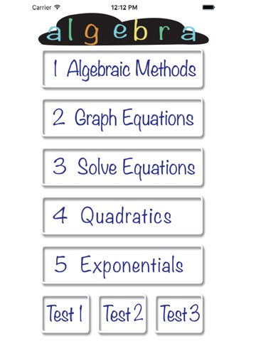 Algebra 1 - Test Prep Pro is the app to help you prepare for your math test. The math is divided up in small sub-categories with a short quiz after each category.