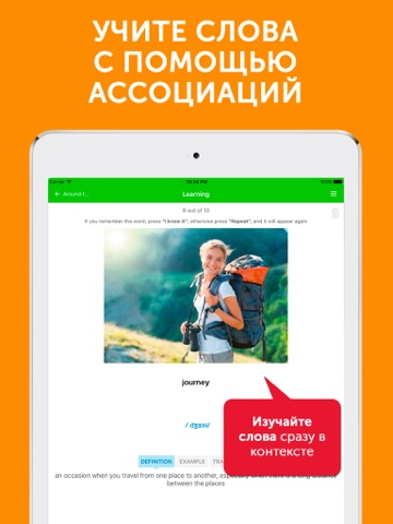Всего в приложении 4 уровня сложности, в каждом х категорий, разбитых на темы. Первая категория первого уровня бесплатна для ознакомительного пользования. Попробуйте уникальную методику изучения слов и убедитесь в ее эффективности!