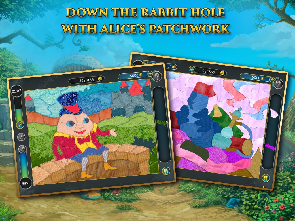 Assemble patchwork mosaics while you travel with Alice and the famous characters of Wonderland and Looking-Glass Land!