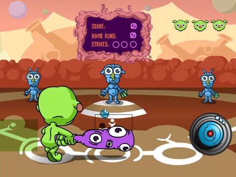 This cartoon alien world is alive! Everything on this strange, forbidden planet is a alive and weird! The baseball bats have eyes, the balls go in all alien directions, just tap your finger fast to try to swing that bat.