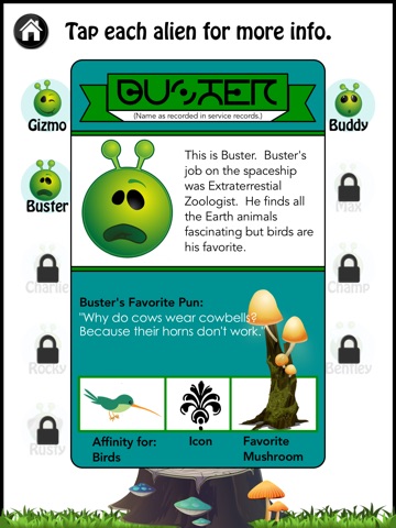 The Grumpy Aliens cant seem to get enough of our Earths mushrooms! They eat mushrooms in their breakfasts, lunches, dinners, beverages, desserts, T.V.-watching-snacks, repairing-the-spaceship-snacks, card-night-snacks, as well as in their soups, salads, and appetizers! Its no wonder they wanted to make sure that mushrooms were included in their new game!
