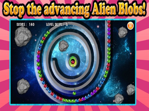 Alien Space Target is all about the game of survival against a ticking clock! Simple to play, the aim is to shoot the correct colored bomb to match three or more of the ever advancing bombs. Your favourite alien is located in the central bunker and you are in command to shoot to curb the invading jelly bombs. But be careful! Careless and wasted shots will only increase the number of these advancing bombs and maybe shorten your life! Once these reach your Alien - its game over!