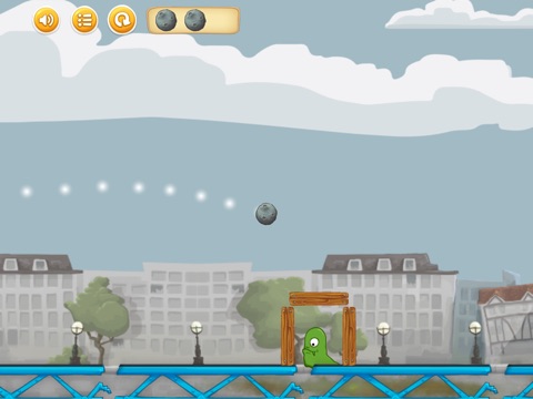 The only way to stop them is by firing asteroids with your slingshot. You only have three shots per level to to try to shoot the flying aliens and aliens already on the ground. Some aliens are already trapped on the ground and can be killed by destroying the buildings around them.