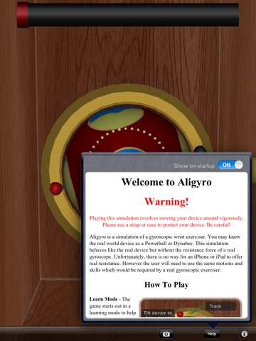 Aligyro responds to your movements like a real gyroscope but without the resistance force of a real gyroscope. Unfortunately, there is no way for an iPhone or iPad to offer real resistance. However the user will need to use the same motions and skills which would be required by a real gyroscopic exerciser.