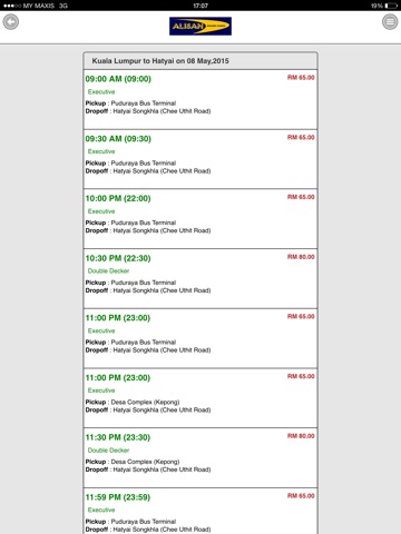 Alisan Golden Coach Express provides long distance express bus service between Kuala Lumpur and Hatyai. We have 26 seater single deck, high deck, 37 seater double deck and many other types of coach. Our coaches are designed by professional to give provides comfort seating to our customer. Some of our coaches come with power plug and FREE WIFI.