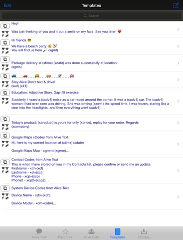 * Save away your Favorite Messages in Alive Text as templates.