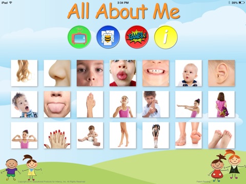 All About Me introduces Kids to their own bodies! This delightful video app features children, songs, & fun. More than twenty body parts are reviewed, including face, mouth, eyes, ears, nose, hands, feet, legs, arms, back, shoulders, elbows, knees, fingers and toes. This exploration of the human body is tailored to beginning language learners and is appropriate for babies and toddlers as well as older children with speech delays. In app purchase provides access to additional video and video content