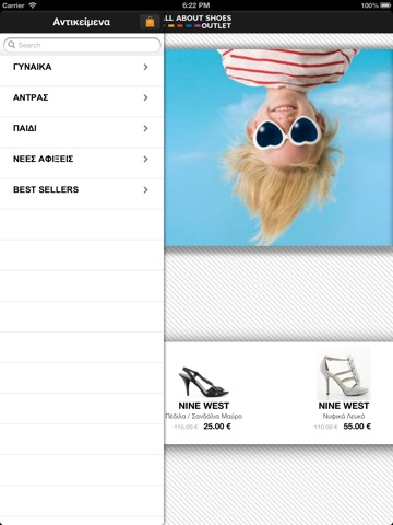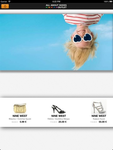 Καλως ορίσατε στην mobile εφαρμογή του All About Shoes, το μεγαλύτερου Outlet γνωστών σχεδιαστών στην Ελλάδα, σε τιμές Stock. Κατεβάστε την εφαρμογή στο κινητό σας και ανακαλύψτε ολόκληρη την συλλογή του All About Shoes, μαζί με τα Νέα Προϊόντα και τις Προσφορές. Εντοπίστε τα υποδήματα που πάντα αναζητούσατε και αγοράστε τα μέσα από το κινητό σας, αποθηκεύστε τα στο καλάθι σας, ή μοιραστείτε τα με φίλες και φίλους.