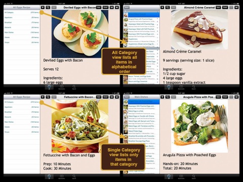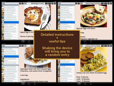 Love eggs? All Eggs Recipe is an application containing over 350 detailed cooking recipes that included eggs that can be prepared easily at home. The recipes are grouped into different categories for easier reference. For each recipe included in this App, a photo, an ingredient list, and a step by step cooking direction is provided. Detailed nutritional information is also included at each recipe so as to provide added information. This App is an excellent app for egg lovers who wishes to cook more dishes at home.