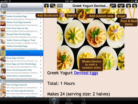* Ability to BOOKMARK selected recipes for easier reference