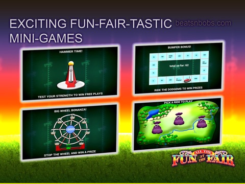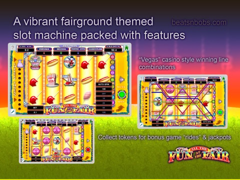 From the makers of "Super Reel Gem Drop" and "One Thumb Bandit 60s Fruit Machine" comes the new vibrant fun-fair themed slot machine. Traditional "Victorian" fairground style design, high definition graphics, musical effects, flashing lights and animations in a modern style casino fruit machine.