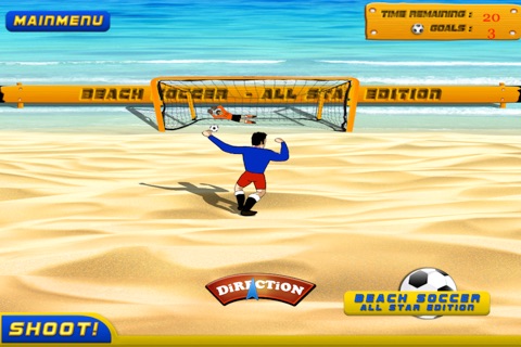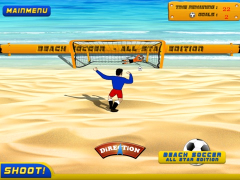 Get ready for some fun beach soccer!! Youre objective to his action packed game is simple -- score as many goals as you can!