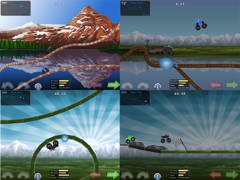 Race on awesomely designed crazy tracks with moving parts, loops, multiple paths, unlock turbo charged trucks and find bank hidden on every track.