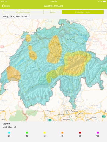 - Weather information and airborne pollutant levels (ozone and particulate matter)